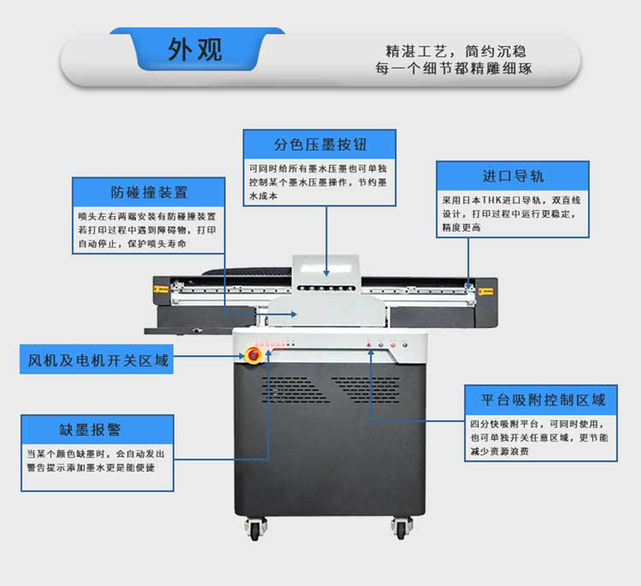 6090小型UV打印機(jī) 賣點(diǎn): 1、深思想尖端技術(shù),小理光GH2220雙噴頭升級(jí)加強(qiáng)版新一代機(jī)型! 2、新一代小型UV平板打印機(jī)市場(chǎng)最有競(jìng)爭(zhēng)力的機(jī)型! 3、老客戶重購(gòu)首選唯一機(jī)型,市場(chǎng)影響力可見(jiàn)一斑! 4、全鋼結(jié)構(gòu),穩(wěn)重大氣,保質(zhì)保量,長(zhǎng)久保值 5、真正實(shí)現(xiàn)高精度高速度完美結(jié)合! |